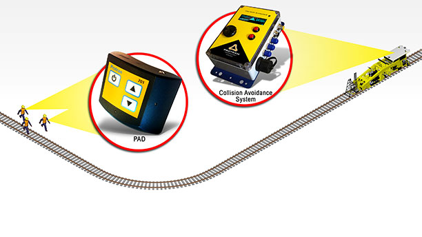 When a train is detected, a secured alarm is sent to any worker wearing a Personal Alert Device (PAD) that a train is approaching, giving the work crew time to clear the tracks.