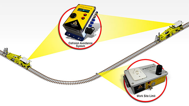 A Work Block unit is placed on the track at work block boundaries and will alarm any vehicle with a Collision Avoidance System installed in it. Vehicles are alarmed before encroaching an undesignated work block or exiting a designated work block.